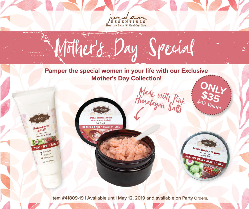 First, check out our exclusive Mother’s Day Collection Bundle, offered only a limited time.  The Mother’s Day Collection contains Jordan Essentials Basic Collection in the popular and retired fragrance of Guavaberry and Goji!  Plus, we kicked this collection up a notch.